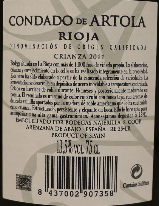 Rioja Crianza, Condado de Artola, Najerilla, 75cl